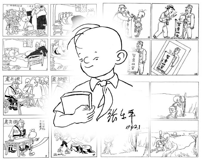 光光的大脑袋,顶着三根毛,或趴或卷或翘,圆圆的大鼻头…… 我——三毛,今年90岁了,仍是少年。 7月28日,是我90岁的生日。 上海巴金故居常务副馆长周立民在朋友圈里发了一则消息,7月26日,“重温《三毛从军记》图片展”将在巴金故居开展,我将重访这位老乡前辈的故居。 当年,“父亲”张乐平常常带我一起去这里拜访巴金先生,自从1950年起,我家搬到上海五原路288弄3号,距离巴金家——武康路113号步行仅需10分钟。两人因工作常有联系,又性情相投,常常往来,交游甚密。 7月28日,我生日当天,在家乡海盐为了纪念抗战胜利80周年,“战火中的一缕清风”——张乐平抗战作品暨《三毛从军记》文献展开展。在此期间,海盐县海塘村张乐平故居旧址将立碑纪念。 我的“兄弟”——张乐平之子张慰军将带我重返故里。 90岁了,“父亲”张乐平赋予我的这一生,流浪过,从军过,经过战火,也见过盛世,有过艰辛,有过苦难,也有过欢笑。 诞生记 作为中国漫画的代表人物之一,我生于上海。1935年7月28日《晨报》副刊《图画晨报》,原本连载的漫画《王先生》被两幅《三毛》四格漫画取代,《王先生》的“父亲”叶浅予生病,我的“父亲”张乐平临时救急,用“三毛”漫画补缺,这就是现在能找到的最早的“三毛”。 我的诞生,是“父亲”张乐平的灵光乍现,也是他多年的漫画积累和生活打磨。 “父亲”1910年11月出生在海盐县黄庵头村张家门(今海塘村),幼年家境贫困,迫于生计,1925年,15岁的他小学毕业后就到上海郊区的永源木行当学徒。画画,“父亲”算是自学成才,他从1928年开始向上海各报纸投稿,上世纪30年代初,经常在《时代漫画》等刊物上发表漫画作品,逐渐成为上海滩颇有名气的专职漫画家。 当时,正是中国漫画的黄金时代,数得着的漫画形象便有叶浅予的“王先生”和“小陈”、鲁少飞的“改造博士”、梁又铭的“弗先生”、黄尧的“牛鼻子”……当时,中国漫画多为图配文,鲜有孩童形象,风靡世界的米奇、大力水手等外国动漫占据着孩子们的视线。 我诞生时,“父亲”虽只有25岁,但已颇有名气。他正在连载《毕笛生史》,一个头发尖尖、一无所有却死要面子的市井小民。“父亲”从小成长于民间,经历世事人心,他言语不多、老实本分、坚强善良、爱憎分明,他用画笔记下人间沧桑,歌颂美好善良,也抨击人心丑陋。 其实,在“父亲”最初的画稿中,我是个光头小子,那三根毛,正是他在反复揣摩中,某日偶发灵感的神来之笔。闲闲三笔,便有了“三毛”。正如半个多世纪后,一位香港漫画研究者的评价:“立时在芸芸外国儿童漫画偶像中,争得了一席位,并为中国树立了自己的儿童形象,意义重大之至。” 我诞生之后,一下子就火了,仅1935年至1937年,上海各大媒体就刊登了200多幅三毛漫画。 最初我其实只是个可爱的顽皮少年,就像当时上海街头随处可见的孩童,对世界充满好奇,也因此闹了不少笑话,这其实和当时流行的国外儿童漫画走的是差不多的路子。 从军记 1937年,全面抗战爆发,中国漫画界掀起抗战救亡的浪潮。 八一三事变后,“父亲”和上海的热血漫画家王敦庆、鲁少飞、叶浅予等人组织成立了“上海漫画界救亡协会”,组建救亡漫画宣传队,他是副领队。 漫画“从军”,他以画笔为兵戈,开始了一场没有硝烟的漫画战。 1937年9月,第一个战时漫画刊物《救亡漫画》创立,这也是当时全国抗日漫画运动的中心刊物,号召全国漫画家“与日寇作一回殊死的漫画战”。 11月,漫画宣传队撤往武汉,编辑出版《抗战漫画》,“父亲”是主要编辑,也是作品最多的画家之一。 他在《抗战漫画》上发表了数十幅漫画作品,连续为《抗战漫画》作了四期封面画。《唯有军民合作,才能消灭敌人》首先号召抗日军民团结抗战。 1938年4月,国际宣传处需要一批漫画赴苏联参加国际漫画展,漫画宣传队赶制了45件漫画,其中,有“父亲”创作的《啊!中国孩子!》等,6月在莫斯科展出。 据叶冈先生在《散点碎墨》中回忆:“张乐平是漫画宣传队的副领队,是队中造型第一高手。他画的人物经得起解剖,所以队中有大画制作,第一起稿人总是他。”当时,漫画宣传队实际管事人是他,有大画制作第一起稿人也是他。 我也在此时“扛”起了大刀,“父亲”以我为主角创作了一系列漫画发表在《抗战漫画》上。《三毛的大刀》讲的是我报名参军时因年岁小、个子矮被拒绝,我就拿起大刀,一下子砍倒两棵大树,说:“我不信东洋鬼子的颈子比树干还硬。” 此后八年,“父亲”辗转各地展开抗日活动。文史学家魏绍昌说:“张乐平在极其艰苦的环境中,辗转沪、苏、鄂、皖、浙、湘、桂、赣、闽、粤诸地,以画笔为武器,为中华民族的救亡生存作出了卓越的贡献。” 1938年武汉会战爆发,随着武汉失守,漫画宣传队分两队退守桂林,“父亲”带领漫画宣传分队由武汉出发,经九江、南昌到安徽休宁第三战区政治部所在地开展工作,9月,抵达长沙,开展绘制抗日壁画等宣传工作,到达桂林后,举办抗日漫画展,开办漫画研究班。 1939年夏,“父亲”和漫画宣传队在宁波及天目山一带开展流动画展。他在战地画了很多素描和速写,在金华举办了个人战地素描展,展览全部收入捐献给抗日救亡运动。他还与在金华的爱国作家、学者合作,创办以抗日斗争为中心的综合性杂志《刀与笔》月刊,发表了不少战斗锋芒毕露的抗日漫