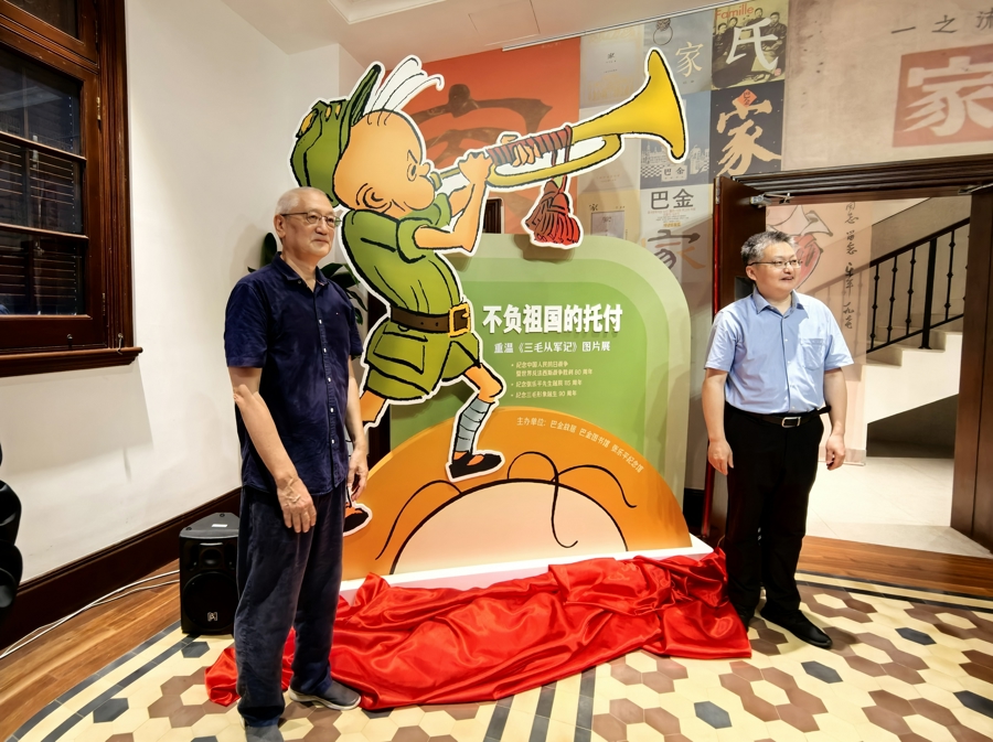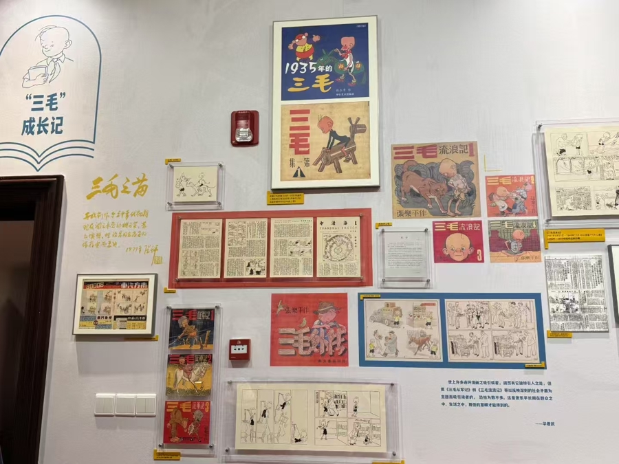 一个“光光头上三根毛,圆圆鼻子往上翘”的孩子在饱经苦难后,为了生存加入了抗日队伍,引发了一系列令人哭笑不得的轶事趣闻,成就了家喻户晓的“三毛”,陪伴几代人长大的三毛九十岁了。昨天,在巴金图书馆开幕的“不负祖国的托付——重温《三毛从军记》图片展”上,我们又重温了自1935年“三毛”形象诞生以来,到1992年张乐平先生逝世半个多世纪的各种三毛形象和系列。 展览揭幕 “三毛之父”张乐平先生自1937年即参与抗日宣传队,整个抗战时期始终坚持在画。1946年,他以抗战时期的见闻,创作长篇连环漫画《三毛从军记》,在《申报》连载,一面世即受大众欢迎。作品以抗日战争为背景,通过少年三毛在军队中的遭遇,展示战争的残酷,是中国首部无字长篇漫画。 各种版本的三毛 展览上,还有张乐平先生在抗战期间辗转湘鄂等地创作墙绘,率漫画宣传队沿途进行抗日的珍贵照片。此外,由该漫画作品改编创作的动画片和电影作品,以及现代作家的知名抗战作品也在巴金图书馆进行播出。 各种版本的《三毛从军记》 茶话会现场济济一堂,大家都为张乐平和三毛而来 抗战漫画 张乐平画的巴金 “张乐平先生是抗战精神的见证者、践行者、传播者。抗日战争爆发后,作为抗日救亡漫画宣传队副领队,张乐平先生辗转沪苏、鄂、皖、浙、湘等地,‘武器就是一支画笔’,满怀激情与斗志,不负文艺工作者的使命担当,在抗战美术创作领域成果丰硕,是中国一代知识分子的表率。”上海市作家协会党组书记马文运说。 在巴金图书馆举办这个展览,张乐平之子张慰军感到十分欣慰,“我父亲是非常崇敬李伯伯(巴金)的。他也赞同李伯伯的要讲真话,要反思。晚年,他一直把李伯伯的《随想录》放在他的枕边。三毛虽然老是长不大,但是今年他已经90岁了。现在还有许多小读者还在读三毛。希望大家都像三毛一样,坚强,勇敢,快乐,热爱和平。”悬挂在巴金图书馆楼梯入口处展览条幅上佩戴着红领巾的三毛画像就是张乐平特意赠给巴金的。 张乐平先生的谦逊幽默有趣,让他赢得了许多“小朋友”,资深媒体人徐平回忆,张乐平晚年曾经说过:“三毛不仅是我的孩子,也是我的老师。” 少年儿童出版社三毛图书编辑部主任周婷带来一个好消息,今年的上海书展上,新出版的《三毛流浪记》将以数字化的方式保留张乐平绘画的线条,加以重新着色,请儿童文学作家重新配文,九十岁的小三毛焕发新光彩。 “张乐平是位思想家,他的作品来自对社会的关注和思考,三毛的形象因此而丰满。今天,我们如何面对三毛,重新发现寻找三毛,如何继承这份历史文化遗产,用新的技术手段和文创形式,进一步放大其艺术和社会价值,还有更多工作要做。”漫画研究学者、上海图书馆中国文化名人手稿馆原馆长、上海师范大学特聘教授黄显功说。 暑期,巴金图书馆将特设主题创作空间带来艺术创作体验活动,带领孩子们一起画三毛、印三毛,并将推出现代作家抗战作品朗诵片段分享,演绎现代作家的优秀抗战篇章,这些优秀的作品也将在巴金图书馆的阅览室和各个阅读区供读者阅读欣赏。 原标题:《三毛九十岁了,在他身上我们还能看到什么?》 栏目编辑:黄永顺 本文作者:新民晚报 徐翌晟 ——摘自2025年7月27日上观新闻