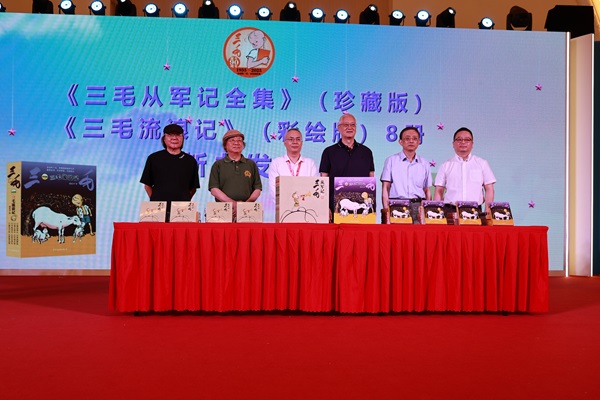 2025年,是中国人民抗日战争胜利暨世界反法西斯战争胜利80周年,也是承载几代中国人记忆的经典漫画形象三毛诞生90周年,还是漫画大师、“三毛之父”张乐平诞生115周年。少年儿童出版社特别推出重磅新书《三毛从军记全集》(珍藏版)与《三毛流浪记》(彩绘版)8册,以此纪念。 8月16日,“国潮顶流‘三毛’诞生90周年暨三毛新书发布会”在上海展览中心中心活动区举办,上海世纪出版集团副总裁李远涛,漫画家、上海市美术家协会荣誉顾问郑辛遥,“三毛之父”、漫画大师张乐平之子,张乐平纪念馆名誉馆长张慰军,上海市美术家协会漫画与动漫艺术委员会主任孙绍波,漫画研究学者、上海图书馆中国文化名人手稿馆原馆长、上海师范大学特聘教授黄显功,上海新华传媒股份有限公司副总裁、上海新华传媒连锁有限公司总经理陈榕,少年儿童出版社总编辑陆小新,少年儿童出版社副总编辑朱艳琴等漫画界、文化界、出版界的嘉宾出席活动,与众多三毛的读者朋友们齐聚一堂,共同见证《三毛从军记全集》(珍藏版)与《三毛流浪记》(彩绘版)新书的盛大首发,向跨越近一个世纪的国漫经典致敬。 三毛90载,跨越时代的文化记忆 1935年,第一幅三毛漫画在上海《晨报》副刊《图画晨报》上发表,自此,这个头顶三根标志性头发的孩童形象,便以顽强的生命力、深刻的时代烙印和独特的艺术魅力,成为几代中国人共同的记忆。 漫画大师张乐平,始终站在平民的视角进行创作,用画笔勾勒社会生活百态,他以敏锐的艺术洞察力与饱含深情的笔触,让一个一个栩栩如生、充满个性的三毛形象跃然纸上。从上世纪三十年代顽皮的三毛,四十年代从军的三毛、流浪的三毛、迎接解放的三毛,到解放后获得新生的三毛,三毛历经任何境遇都能积极向上、不屈不挠、乐观勇敢,展现了中国普通民众在社会岁月变迁中始终葆有的坚韧善良的精神品质与赤诚炽热的家国情怀。三毛,已经不仅仅是一个漫画人物,更成为连接历史与当下、传递民族精神的重要文化符号。 少年儿童出版社是“三毛之父”张乐平的生前单位,自1959年出版第一本黑白版《三毛流浪记选集》伊始,便与三毛结下了不解之缘。66年来,少儿社始终以高度的文化自觉和出版使命感,将守护、传播、创新三毛这一经典IP视为己任,已出版张乐平漫画百余种,各种版本的三毛漫画销量数千万册,成为三毛漫画重要的出版机构,出版张乐平漫画品种最多、规模最大、持续时间最长、影响最深远。 近年来,少年儿童出版社持续深耕内容拓展与形式创新领域,精心构建起多版本、多层次的三毛图书出版体系,包括长销畅销的典藏版漫画,展现张乐平四格黑白漫画韵味的经典版漫画,以及学生版、彩图版、彩绘版、珍藏版漫画等,力求覆盖不同年龄段,满足不同读者的多元阅读需求。其中,具有里程碑意义的《三毛漫画全集》(全9册),系统、完整地收录了张乐平先生半个多世纪创作的千余幅三毛漫画作品,以创作时间为经线,以故事主题为纬线,编织9册为一套,是目前国内收录三毛漫画最全的版本,为读者开启一扇全面领略三毛漫画魅力的窗口;《三毛学雷锋》(彩绘版)通过现代艺术手法重构经典漫画作品,以文图互动的形式谱写三毛学雷锋、做好事的动人篇章,让优良品格与伟大精神融入儿童生活,引领他们树立正确三观,培养优秀道德品质。 三毛漫画图书不仅获得“感动共和国的50本书”称号,入选国家教育部阅读指导书目,更是走出国门、走向世界,成功输出了法文、意大利文、西班牙文等多个语种版本,荣获法国安古兰国际漫画节“文化遗产奖”,意大利博洛尼亚童书展世界无字书“特别荣誉奖”,入选联合国可持续发展目标图书俱乐部推荐书单。 少年儿童出版社总编辑陆小新在致辞中说道:“站在三毛90周年的新起点,少年儿童出版社将继续以高度的文化自觉和出版担当,做好三毛品牌的守护者与传播者。我们将以更高的出版标准、更广的传播视野、更深的开发力度,让三毛这个中国文化符号绽放新的光彩。” 2025年,三毛已经陪伴读者90个年头了。90岁的三毛依然鲜活生动,他的故事依然感动着无数人。三毛所展现出来的乐观向上、坚韧不拔的精神,依然激励着一代又一代读者奋勇前行。 匠心焕新,经典作品的传承与创新 少年儿童出版社始终坚持“尊重原著、传承精髓”的出版理念。编辑团队以严谨的治学精神,深入挖掘三毛漫画深厚的文化底蕴与艺术价值,在图文校勘、装帧设计上精益求精,力求多方位展现张乐平作品的艺术魅力。 《三毛从军记》是张乐平艺术生涯中非常重要的一部连环漫画作品。抗日战争期间,怀揣着强烈爱国热情和忧国忧民的情怀的张乐平走上“以笔救国,以画抗战”的漫漫长路。这段血与火铸就的人生经历为《三毛从军记》提供了丰富的创作源泉。1946年,《三毛从军记》在上海《申报》连载。故事讲述了上世纪三四十年代抗日战争时期,三毛如何加入军队,并以他作为儿童所特有的机智和天真立下种种战功从而成为一名抗日小英雄的过程,表现了三毛赤诚爱国、英勇无畏、不屈不挠、顽强拼搏的精神品质。 在抗战胜利80周年的特殊历史节点,《三毛从军记全集》(珍藏版)以原汁原味黑白经典漫画,最大程度忠实呈现张乐平原作的笔触与风貌。图书采用精装设计,配以考究的印制工艺,展示了“三毛之父”以画