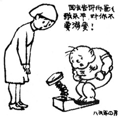 不久前张乐平的大孙子奉他奶奶冯雏音之命来北京看望我,他告诉我一个月后互联网上将推出一个《三毛》网站,传播张乐平的漫画艺术,三毛是张乐平创作的一个被老百姓,尤其被少年儿童所熟悉的人物,至今不衰,乐平创作《三毛流浪记》我印象是在二十世纪三十年代,五十年代中国的社会起了翻天覆地的变化,广大的儿童生活得到了保障,儿童进了学堂,三毛才停止了他的流浪生活,开始他新的旅程。张乐平创造的反映旧社会流浪儿苦难中挣扎的机智勇敢的《三毛流浪记》,是一本少年儿童爱看的漫画,教育了中国的几代人,三毛成了中国家喻户晓的人物。我和张乐平是老友,解放后时常来往见面也只是嘻嘻哈哈,开个玩笑,很少研究他的创作,直到他去世,我才感到遗憾和沉重,三毛不只是中国的,他应属于世界的漫画宝库。此次他孙子来京看我,临别要我写几句话给三毛网站,我写了“多看三毛画,少吃肯塔鸡”给他。 中国现在改革开放,经济发展,老百姓的生活确实提高了,儿童是我们的未来,让他们在幸福的生活中成长,吃得好一些,穿得好一些也是正常的,但是过分的娇惯,不能艰苦,养成孩子们的奢侈观念,大手大脚,一个个小胖墩儿出现了,这就是我们的“小太阳”。 常在街上的快餐店前看到这些小朋友,后来才知道,他们是去过生日的或参加“PARTY”,这些洋快餐也会吸引他们,办得又干净、又适应儿童的心理品味。因此小胖墩就越来越多,如果一个小家庭去吃顶多也只三个人,加上奶奶爷爷也就五个人,现在过生日一请同学就是几十个,经济条件好的家庭可以这样大吃,差的就难了,小孩又极好攀比的,别人可以过生日,我不能到快餐店过生日?多难为情。因此“小太阳”身上又多了点黑子。 改革开放,肯德基、麦当劳在中国有很大的发展,也在我们的孩子身上赚了不少钱,这是他们的本事,我们的快餐店为什么比不过人家?这是另外一个问题,但是要让孩子们受到教育,让他们知道怎样做个好儿童,将来怎么成为国家的栋梁,我想让孩子们多看点像《三毛流浪记》这样的画,少吃(不是不吃)一点洋快餐,要知道,一套洋快餐的钱用来买一本好书绰绰有余,这样对孩子们的未来是有好处的。