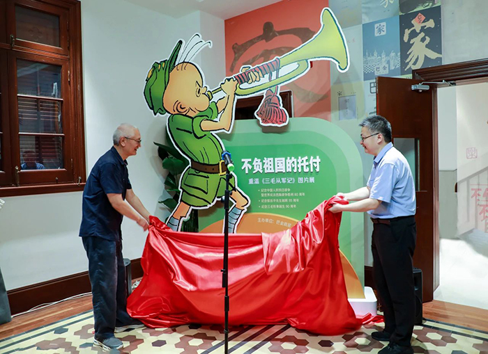 7月26日下午,由巴金故居、巴金图书馆、张乐平纪念馆共同主办的“不负祖国的托付——重温《三毛从军记》图片展”在巴金图书馆一厅隆重开幕,以庆祝抗战的伟大胜利、表达对三毛之父张乐平先生的深切怀念。开幕式结束后,张慰军先生与亲友、美术界知名人士一起为读者带来主题分享——“我们心目中的张乐平”。