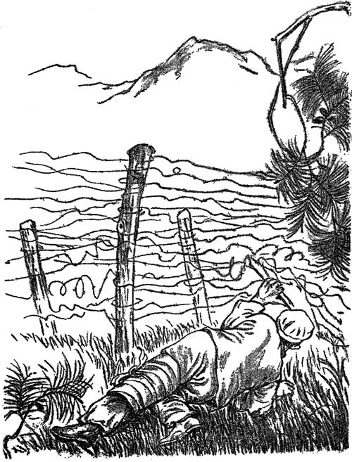 他在铁丝网跟前爬来爬去。他用先前拾来的木棒去拨铁丝,弄了好一阵。