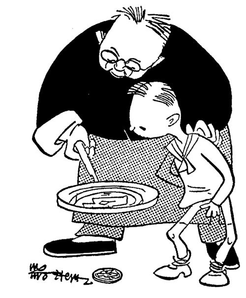 富翁拿着放大镜:孩子,你要先照而后用之。