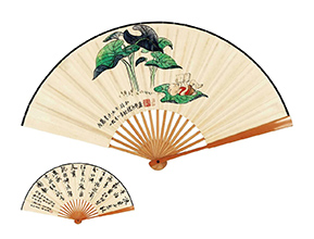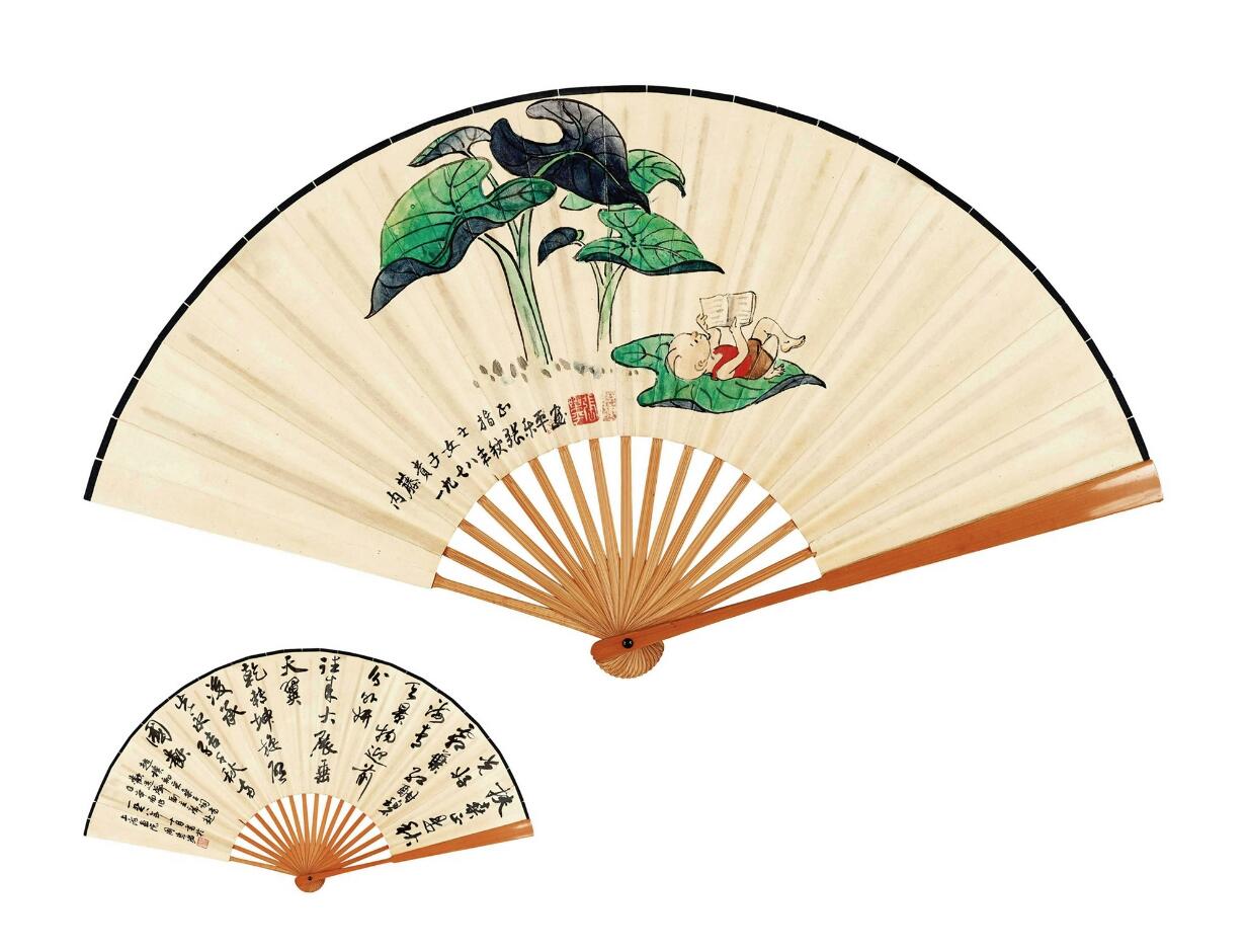 | 4906 张乐平 周慧珺 1978年作 三毛读书图·行书采桑子 成扇 |