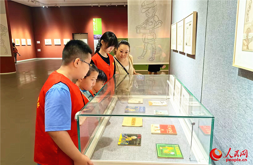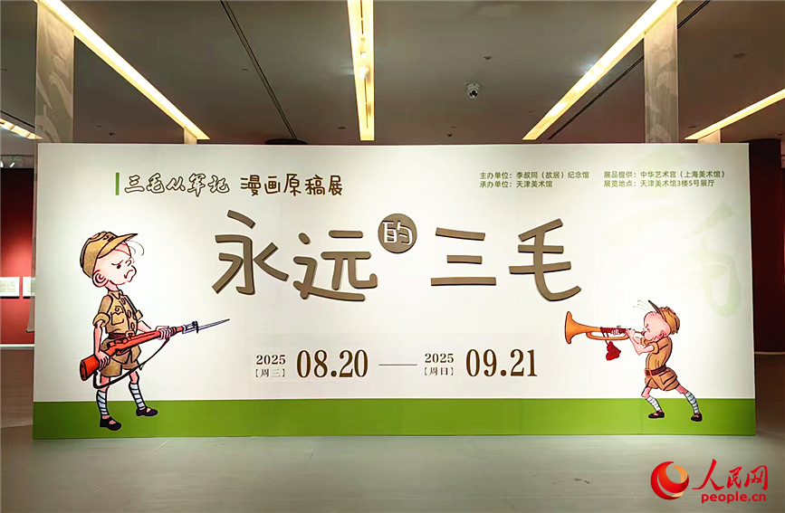 《永远的三毛——〈三毛从军记〉漫画原稿展》开展。人民网记者 李丹摄 暑期,天津美术馆内正上演着一幕跨越时空的温情画面:数十个亲子家庭席地而坐,目光紧紧锁定屏幕上播放的33年前国产经典影片《三毛从军记》。孩子们时而为三毛的滑稽遭遇捧腹,时而为战火中的艰难处境蹙眉,小小的身影在光影流转中,与那个顶着三根头发的经典形象完成了一场奇妙对话。