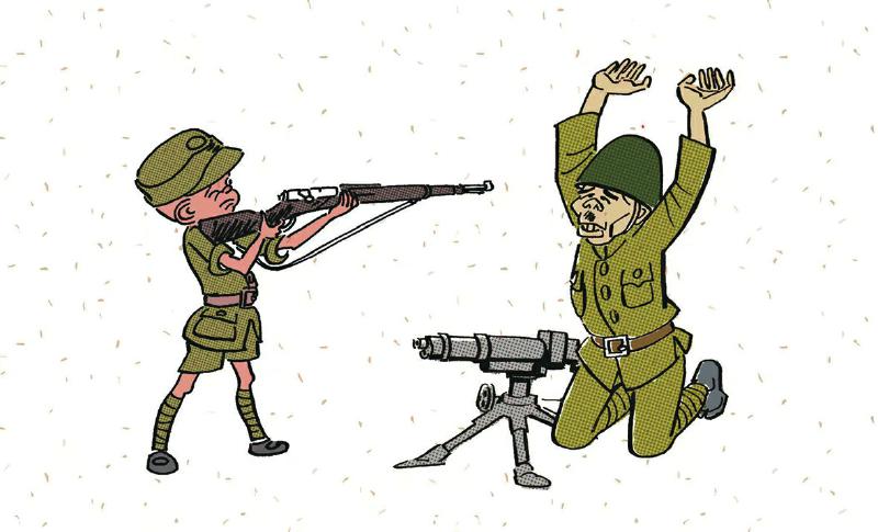 张乐平漫画作品。 本文图片由作者提供 今年是中国人民抗日战争暨世界反法西斯战争胜利80周年,80年前,中国人民经过14年浴血奋战,取得抗日战争伟大胜利。为了赶走日本侵略者,中华民族同仇敌忾,可歌可泣。 在对日战场,还战斗着一群特殊的战士,他们虽然手里拿的不是三尺钢枪,只是一支支的画笔,但他们以笔作枪,到城市、到乡村、到前线、到部队、到基层、到战后废墟等进行创作、宣传,鼓舞广大军民抗击日本侵略者的斗志,为中华民族的救亡图存作出了卓越的贡献,我们熟知的“三毛之父”张乐平先生,就是以画笔为武器与日寇作战的一名杰出战士。 引用张乐平先生的话:我们曾是漫画兵!1937年抗日战争全面爆发,我们这些本来不问政治的漫画工作者,聚集到抗日救亡的旗帜之下,在上海组成第一支抗日宣传队。 在中国共产党倡导的抗日民族统一战线旗帜下,作为全国漫画运动中心的上海,包括张乐平在内的漫画家们在抗日救亡的旗帜下迅速行动起来,在中华全国漫画作家协会的基础上,成立了上海漫画界救亡协会。八一三淞沪抗战发生的当月,组成了救亡漫画宣传队,成员有叶浅予、张乐平、胡考、特伟、席与群、陶今也、梁白波,大家推举叶浅予为领队,张乐平为副领队。1939年春,漫画宣传队一分为二,张乐平担任前线的漫画宣传队队长。在整个转战的历程中,宣文杰、张仃、陆志庠、廖冰兄、陶谋基、叶冈、黄茅、麦非、周令钊、廖末林、章西厓、叶苗、丁深等也陆续加入。在当时非常艰苦的条件下,甚至是在枪林弹雨和硝烟弥漫的战争前线,宣传队画出了一幅幅反战作品,好似一发发射向敌人的子弹;他们创作出的大量抗日救亡主题的漫画、壁画、宣传画等美术作品,鼓舞了全国军民的斗志。 整个抗日战争时期,张乐平与宣传队在极其艰苦的环境中,辗转沪、苏、鄂、皖、浙、湘、桂、赣、闽、粤诸地,漫画宣传队的重要任务之一就是配合形势创作大量的宣传招贴画和参加各种大型宣传活动。漫画宣传队曾先后编印过《抗战漫画》《星期漫画》等刊物,今天还能收集到当年的抗战漫画,多半是靠留存的这些刊物。他们绘制的大幅宣传画和漫画在当地展出;绘制布标、布画分发给各部队应用,还为负责对敌宣传的部门绘制日文传单的插图以及敌军投诚用的通行证等。 1938年4月,需要一批漫画赴苏联展览,漫画宣传队赶制了45件布画,包括张乐平画的《啊!中国孩子!》等,6月初这批作品就在莫斯科正式展出了,向全世界控诉了日寇的暴行和发出了中国人民不屈不挠的抗日决心。 1938年5月20日,中国空军第一次出境远征,飞机携带的不是炸弹,而是抗战宣传传单,其中许多传单上配有漫画宣传队绘制的漫画。传单纷纷扬扬撒向长崎、福冈、久留米、佐贺等地,总数不下百万份。抗战胜利前夕,张乐平绘制抗日漫画专供美军第十四航空队印成传单散发。 1938年9月,包括张乐平在内的漫画宣传队成员等来到长沙,在市区展出从安徽带来的许多布画,张乐平等人又绘制了多幅大壁画。当时长沙的《抗战日报》是很有影响力的报纸,该报根据周恩来、徐特立的建议,由田汉任社长、主编,廖沫沙为副主编。该报的漫画在长沙报刊中独树一帜,张乐平是主要作者之一。 张乐平画了许多“漫画示范”,发表在报刊上或印成传单,以供各地组织抗日宣传活动。漫画宣传队的“漫画示范”为宣传创作提供了样板,让不会画画的群众参与其中,壮大了漫画宣传的队伍,于是一些出自民众之手的模仿创作也散见于街头巷尾。漫画宣传队在东部战区开办漫画训练班,广为散发“漫画示范”资料。他们所作的漫画、宣传画张贴在了大街小巷、乡村农舍、战斗前线;他们的画展不断在街头、乡镇、农村、部队流动展出,激励了广大军民抗击日本侵略者的决心。不少老百姓因为看了抗日漫画而志愿参军。 日本鬼子的侵略给中国人民带来了沉重的灾难,而当时政府的腐败,以及各种各样的社会问题和世间的种种不平现象,张乐平都看在眼里,痛在心上。他据此创作了不少针砭时弊、揭露世态炎凉和官商勾结等不良风气的作品。当时的同事回忆张乐平,说他总是能给人一种积极向上的力量,“无论是什么时候,他一直都用自己的幽默语言感染报社的同事”;“我们都很钦服乐平的骨气”;“乐平从未‘为五斗米折腰’,真正的正气凛然”。 1945年1月日本侵略军进犯赣州,张乐平一家遂离开赣州前往广东兴宁和梅县。抗战期间在赣州居住两年多时间的张乐平生活相对稳定,在这里开始酝酿不朽作品《三毛从军记》和《三毛流浪记》。 战争的血与火,使他跳出了以前的生活圈子。他在战地的所见所闻、颠沛流离的生活和几度生死的战争经历,使他更深入地认识了现实社会。他的世界观、人生观、价值观就此有了巨大变化,使其坚定地立足于平民百姓之中。漫画宣传队至1942年春解散,解散后,张乐平仍坚持在第一线宣传抗战,辗转多地,甚至最后孤军一人,直到迎来1945年抗日战争结束。在整个抗战期间,张乐平作品量巨大。 14年的抗战,中国的漫画家们以笔为武器,纷纷投入战斗,但像张乐平那样长时间深入基层及多次奔赴前线创作、宣传的画家毕竟不多见。尤其是张乐平与他的漫画队友们在东南一带战地艰苦奋斗、百折不挠地宣传抗战的史迹,在中国漫画史上占有光荣和重要的一页。 虽然这段血与火铸
