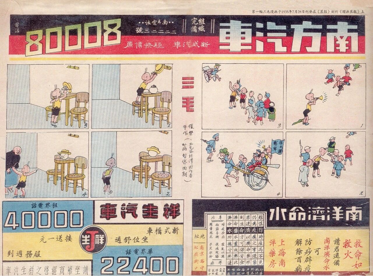 源于生活,寓教于乐:弄堂小儿三毛诞生记 20世纪30年代,已在上海漫画界崭露头角的张乐平,将敏锐的目光投向了都市中最富生命力的群体——儿童。他从日常生活中汲取创作灵感,在弄堂巷陌间捕捉童真童趣,于是,一个头顶三根倔强头发、幽默调皮又善良机灵的小男孩——三毛诞生了。