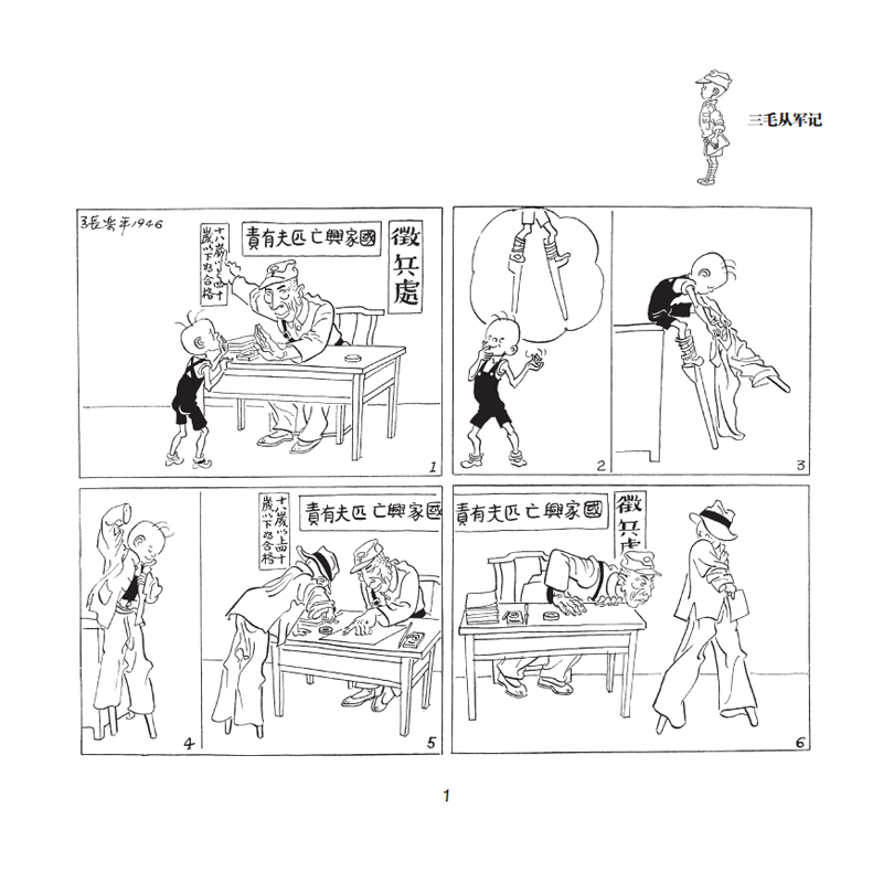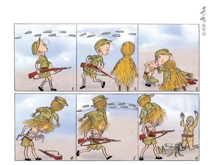 张乐平以画抗战的老照片,选自《三毛从军记全集》(珍藏版) 抗战胜利后,他将这段血与火中淬炼的经历凝结成中国漫画史上的不朽名作——《三毛从军记》。1946年,弄堂里的小三毛成为《三毛从军记》里的抗日小英雄。作品以辛辣又饱含深情的笔触,描绘了三毛在军队中的种种遭遇,既揭露了战争的残酷,更凸显了普通民众——哪怕是一个孩子——所展现出的爱国赤诚与无畏勇气。因此,这部作品历经半个多世纪,对当下儿童的爱国主义教育仍有着深刻的意义。