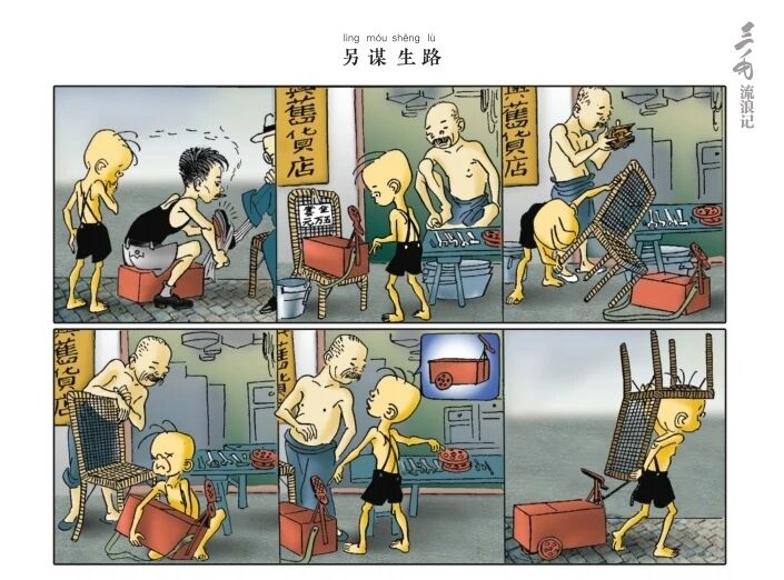 1935年第一幅三毛漫画发表在上海《图画晨报》上 张乐平擅长以“画”讲故事,他曾说,“我想尽可能减少借助文字的帮助,要让读者从我的画笔带来的线条去知道他所要知道的。”他以简洁流畅的笔触,生动勾勒出三毛与伙伴嬉戏、上学、与家人相处的日常场景。作品充满生活的气息与温和的幽默,让读者在会心一笑中,引发对儿童教育、家庭伦理与社会现实的思考。