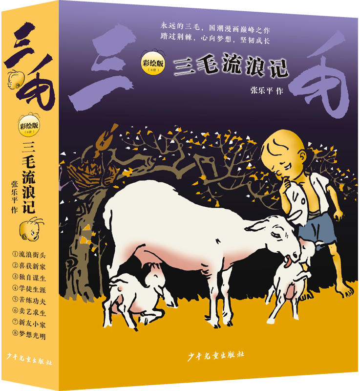 跨越时代,永恒纪念:经典漫画作品的出版传承 从1935年诞生至今,90年来,三毛陪伴着一代又一代的中国人成长,成为几代中国人心中永恒的记忆。作为“三毛之父”张乐平的生前单位,上少社自1959年出版第一本黑白版《三毛流浪记选集》起,已经出版张乐平漫画作品百余种,销量数千万册,成为三毛漫画重要的出版机构,出版张乐平漫画品种最多、规模最大、持续时间最长、影响最深远。 在66年深耕三毛漫画出版事业中,上少社成功构建起涵盖黑白版、彩图注音版、彩图版、彩绘版等多版本、多层次三毛图书出版体系,力求覆盖不同年龄段、满足多元阅读需求。出版的三毛漫画图书不仅荣获“感动共和国的50本书”称号,入选国家教育部阅读指导书目,多次获《人民日报》官方微博、中央电视台推荐;还荣获法国安古兰国际漫画节“文化遗产奖”、意大利博洛尼亚童书展世界无字书“特别荣誉奖”,入选联合国可持续发展目标图书俱乐部推荐书单。
