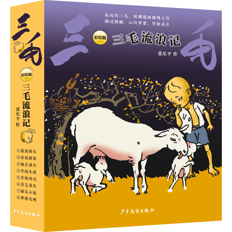 《三毛流浪记》(彩绘版)8册 先说这本《三毛流浪记》(彩绘版)。很多人都是通过《三毛流浪记》的故事认识我的,现在,它变得可漂亮了!过去的黑白画面,如今穿上了全彩的新衣,旧上海的街景和我的喜怒哀乐都变得鲜活明亮。大作家还为图画配上了全新的文字,让每一位读者都能跟随我在街头巷尾冒险,在欢笑与泪水中感受善良与坚韧的品质。