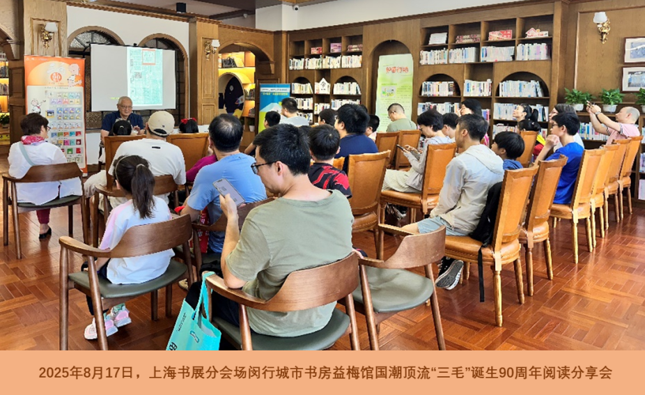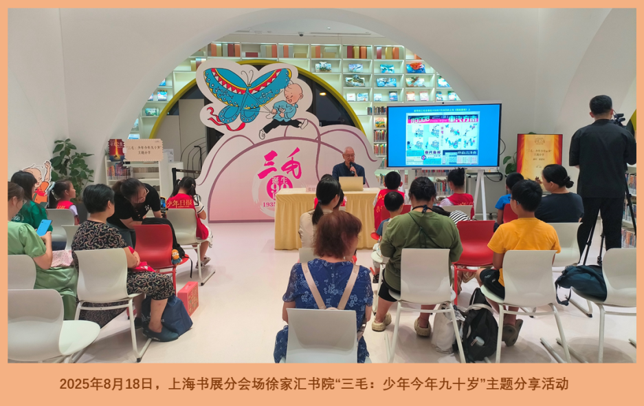《三毛从军记全集》(珍藏版) 另一本《三毛从军记全集》(珍藏版),则是一份沉甸甸的记忆。这本书不仅讲述了我参军抗战的热血经历,更汇集了许多珍贵的历史照片、作者创作经历和手绘路线图,还有各个领域专家的专业解读。它向今天的读者展示了在烽火连天的岁月里,父亲张乐平是如何以笔为枪,以画抗战的,而我这个小不点,又是如何承载和传达了一代人的勇气与抗争的。 行走的生日会:数十场活动的温暖相遇 如果说新书让我“焕然一新”,那么整个年度的系列活动,则让我实实在在地“走遍了四方”。据统计,今年围绕我举办的讲座、发布会、展览等活动有37场,我的足迹从东海之滨走到了西部边疆。 上海,我的“主场”漫游记 作为诞生在这座城市的孩子,上海是我最熟悉、最亲切的“家”!从年初到岁末,我的身影与故事几乎留在了上海的每个文化角落。