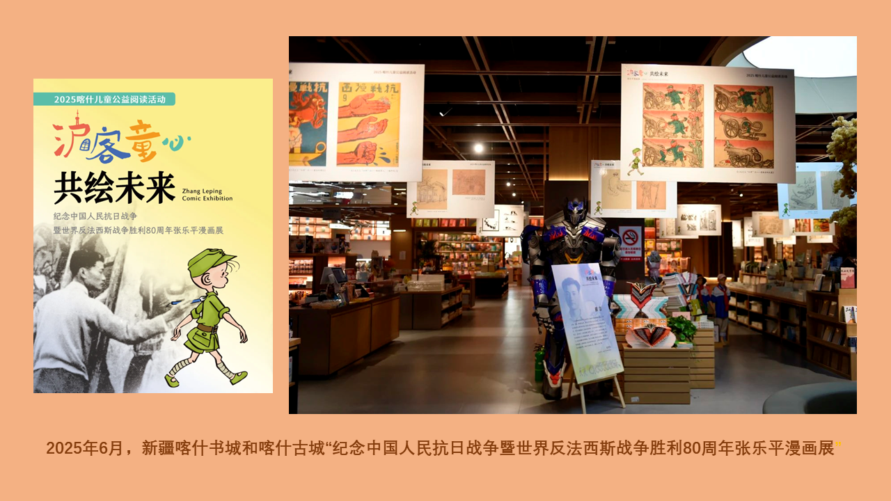 远行,把故事带到远方 我的旅程不止在上海。 我抵达了新疆喀什,在书城和古城里,当地孩子们对我这个远方来的漫画形象充满了好奇,我的抗战主题漫画展如同一扇小窗,连接起不同的文化视野。我到了江西南昌,在青苑书店的阅读分享会上,我的故事与厚重的抗战历史记忆共鸣。